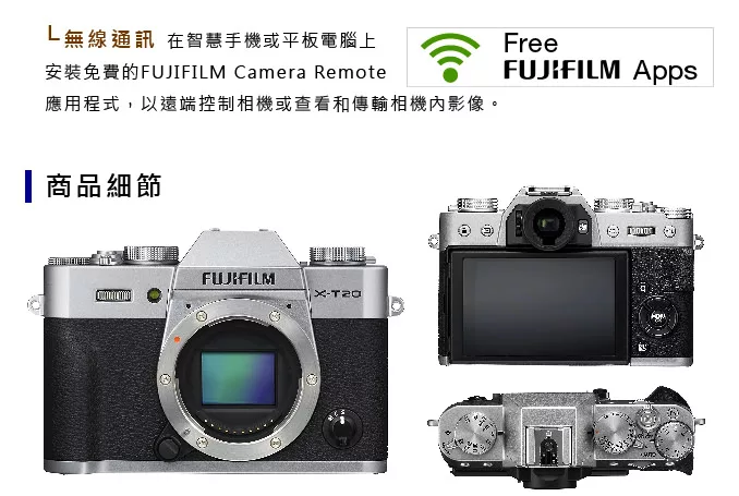 FUJIFILM X-T20+XF18-55mm-(中文平輸)-送專用鋰電池+大吹球清潔組+硬式保護貼銀色![]()